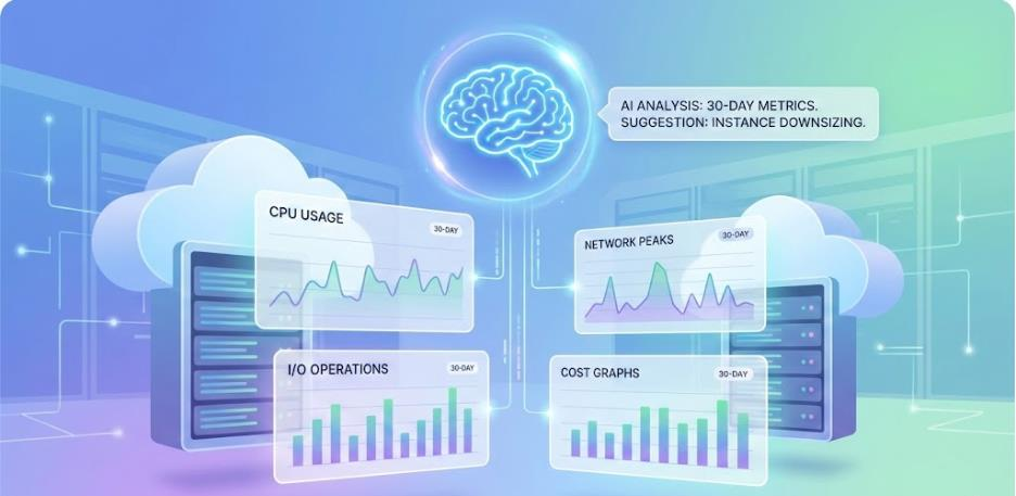 One of the earliest battles was cloud cost optimization. Anyone who's dealt with cloud billing knows the feeling — every month is a mystery box, and you're never quite sure what surprise is waiting inside. On one project, we built an AI agent to analyze 30 days of CloudWatch metrics — CPU usage, network spikes, I/O patterns — and recommend instance rightsizing.